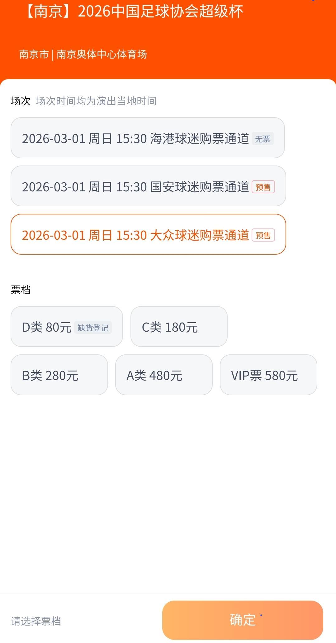 1月23日10:18,作为年度开篇大戏的2026中国超级杯球票正式开票。结果,名义主队上海海港的地缘优势明显,球票很快售罄;客队北京国安以及大众球迷的球票还在热销中。